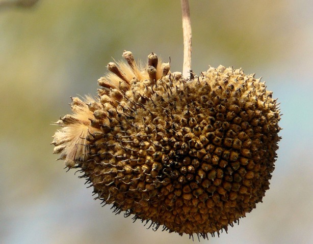 Chaque glomérule est constitué de centaine de fruits. Les fruits sont des petits akènes entourés d’un duvet qui facilite leur dissémination par le vent. Chaque akène renferme une graine.
