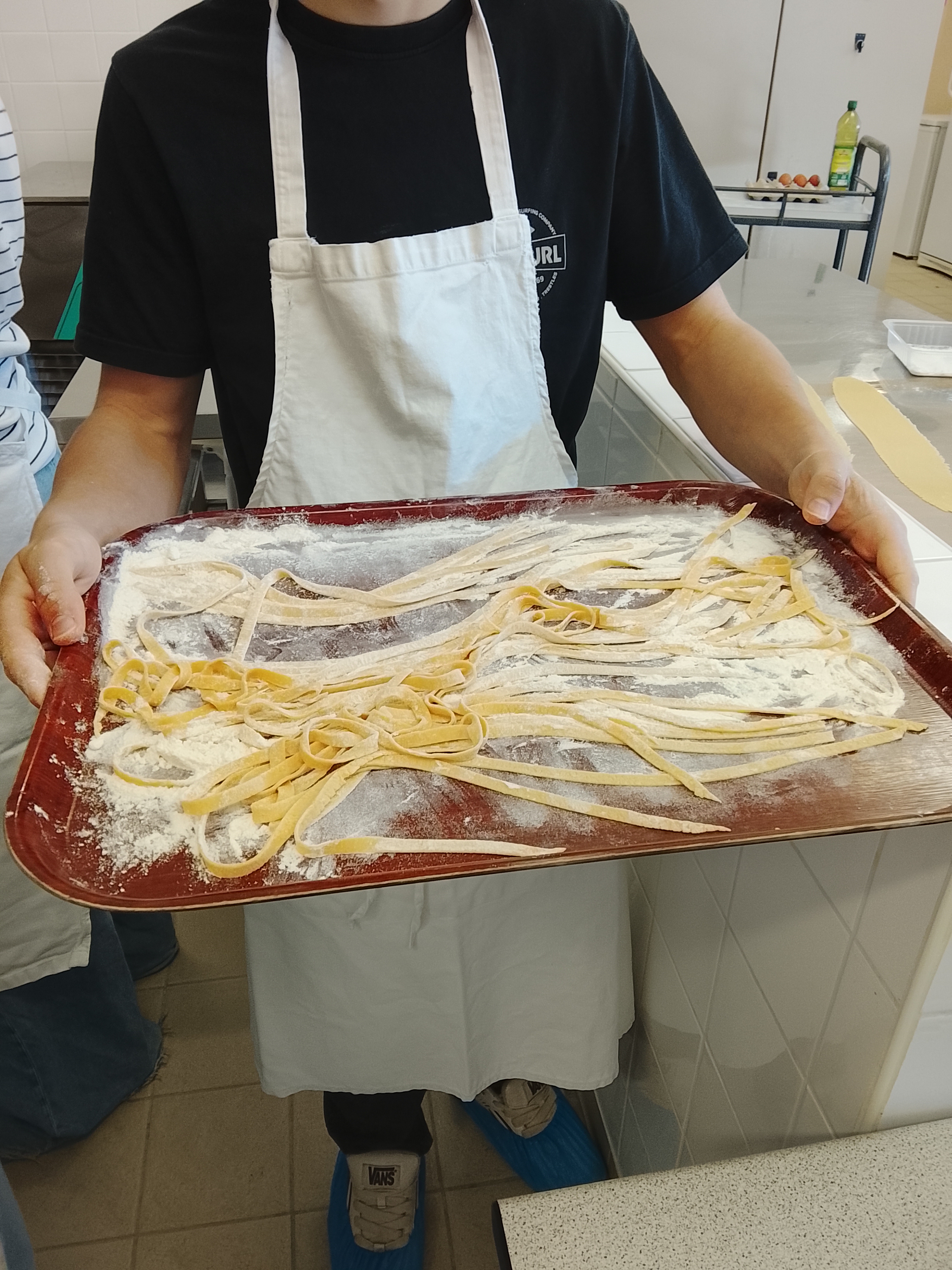 Les élèves de 4eme bilangue Italien ont participé à l'atelier "Pasta" , encadré par leur professeur Mme Aubonnet et Mme Laviron . Chacun est reparti avec des tagliatelles fraîches à déguster . Buon appetito!
