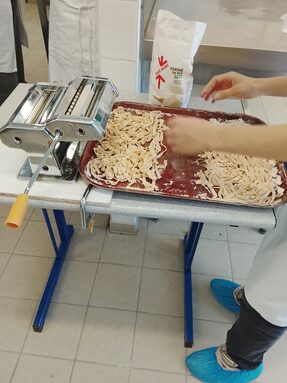 On ne peut étudier l'italien sans faire au moins une fois "LA PASTA" . Recette italienne en main ,pendant 2h les élèves de 4eme bilangue Italien ont participé à un atelier PASTA . Après avoir préparé la pate et l'avoir pétrie , ils ont utilisé le laminoire qui permet de créer des bandes de pates et ensuite transformer ces bandes en "Tagliatelle". La pasta a été mise en barquette , direction la maison ,puisqu'il s'agissait d'un mercredi, pour être cuites "al dente" et dégustées . Merci à Mme Laviron de nous avoir accueillis dans la cuisine de la SEGPA avec tout le matériel et pour son aide auprès des élèves.