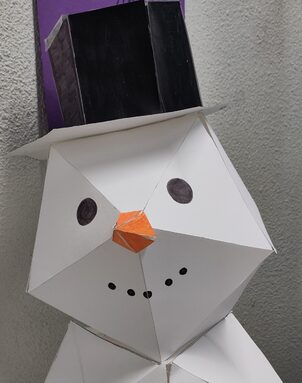 Un petit groupe d'élèves de 6ème a réalisé deux icosaèdres et un prisme droit pour les assembler et former un bonhomme de neige.