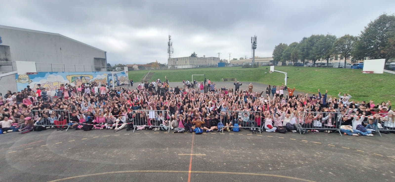 Vêtus de rose, en soutien à la lutte contre le cancer, les élèves ont donné le meilleur d’eux-mêmes. Ce défi sportif s’inscrivait dans le prolongement du travail mené en EPS autour de la course de demi-fond tout au long du trimestre.