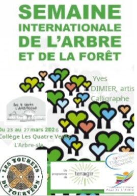 Dans le cadre de la Semaine internationale de l’arbre et de la forêt, qui se tiendra du 23 au 27 mars 2026, les élèves pourront découvrir l’exposition « La forêt dans tous ses états » au CDI tout au long de la semaine. Il s’agit de haïkus réalisés par la classe de 5e1 et de dessins d’arbres calligraphiés par les classes de 5e3 et 4e5.